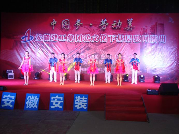 8月26日晚,集團公司送文化下基層深入公司白湖監獄罪犯醫療綜合樓項目部慰問演出,白湖監獄綜合樓項目部全體管理人員和農民工兄弟200多人現場觀看了演出。該工程位于廬江縣白湖鎮,這里工作著一批腳踏實地、埋頭苦干、敢于擔當、奉獻企業的職工,來自集團公司各子公司的“演員”,帶著自編、自導、自演的精品文藝作品,將用一場精妙的文化活動,在這里掀起文化與建設互動的歡樂波瀾。集團公司工會主席徐曉光,白湖分局黨委副書記、總經理沈建華以及公司有關領導和參演單位工會主席出席了演出活動。