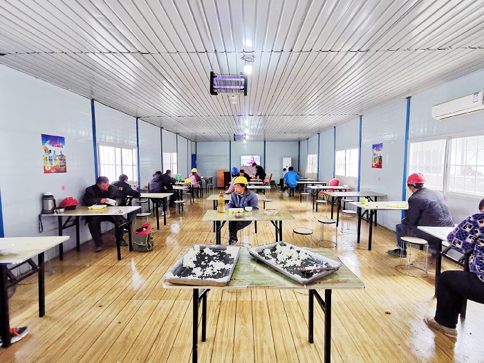看得見(jiàn)的防疫配備,還有落在實(shí)處的防疫舉措。項(xiàng)目部開(kāi)展員工返崗前14天健康在線管理,每位員工每日體溫、身體狀況、居住地、活動(dòng)軌跡等信息,每天線上打卡、全員覆蓋。實(shí)行“生產(chǎn)網(wǎng)格化、吃住軍事化”,員工入“格”后,現(xiàn)場(chǎng)、宿舍、食堂“三點(diǎn)一線”管理,餐廳座位隔單排、菜飯統(tǒng)一打、就餐時(shí)間拉長(zhǎng),衛(wèi)生區(qū)域增加管理人員,人員分類(lèi)管理,將返崗復(fù)工人員控制在最小單元,確保安全。同時(shí),生產(chǎn)流程重組,按項(xiàng)目緩急逐步恢復(fù)生產(chǎn)。