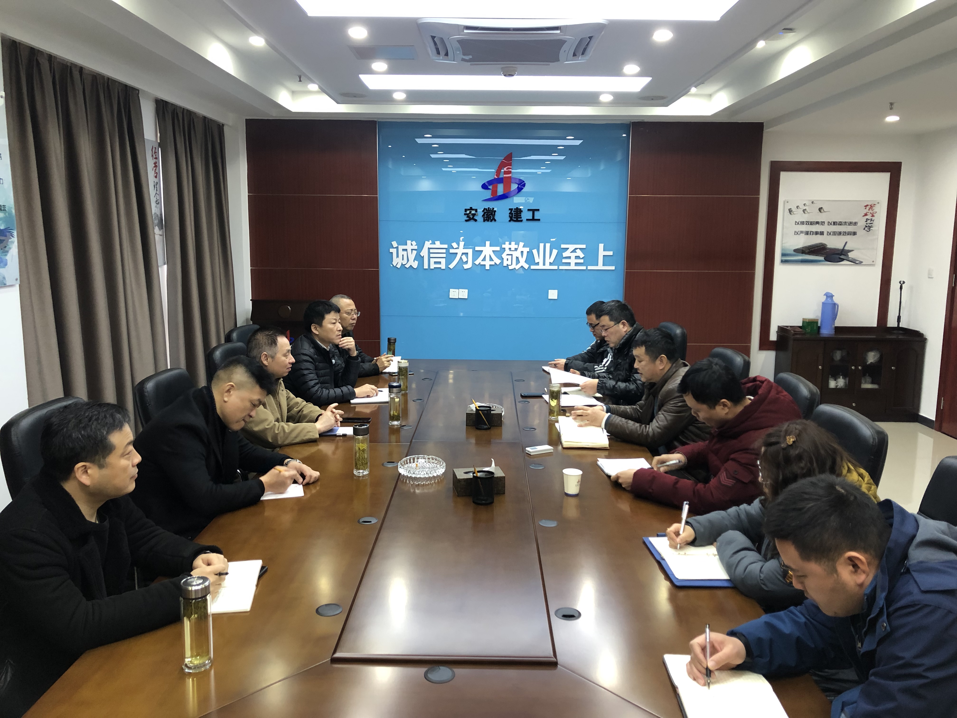 2月14日,公司黨委書記、董事長胡六中赴安慶分公司調研指導工作,公司副總經理王軍、財務副總監李雷、總經理助理趙永峰、招標辦主任李紹林,分公司班子成員及機關、項目部員工參加會議。