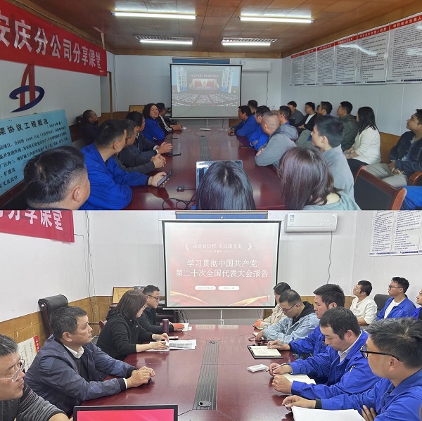 安慶分公司黨支部精心組織及時學。組織全體員工收聽收看黨的二十大開幕會、中共中央介紹解讀黨的二十大報告新聞發布會,通過電視、網絡、廣播等多種渠道及時了解和關注大會盛況,第一時間學習領會黨的二十大精神。組織購買《黨的二十大輔導讀本》、新修改的《中國共產黨章程》學習用書,向黨員干部發放,通過黨員大會、黨員活動日、黨員帶頭領學等形式,為全面深入學習黨的二十大精神,安慶分公司全體黨員領導干部堅持精研細讀黨的二十大報告、黨章等大會文件,全面系統地領會和把握黨的二十大精神,在真學真懂、真悟真用上作好表率、走在前列,帶動全分公司上下迅速掀起學習宣傳貫徹黨的二十大精神熱潮。