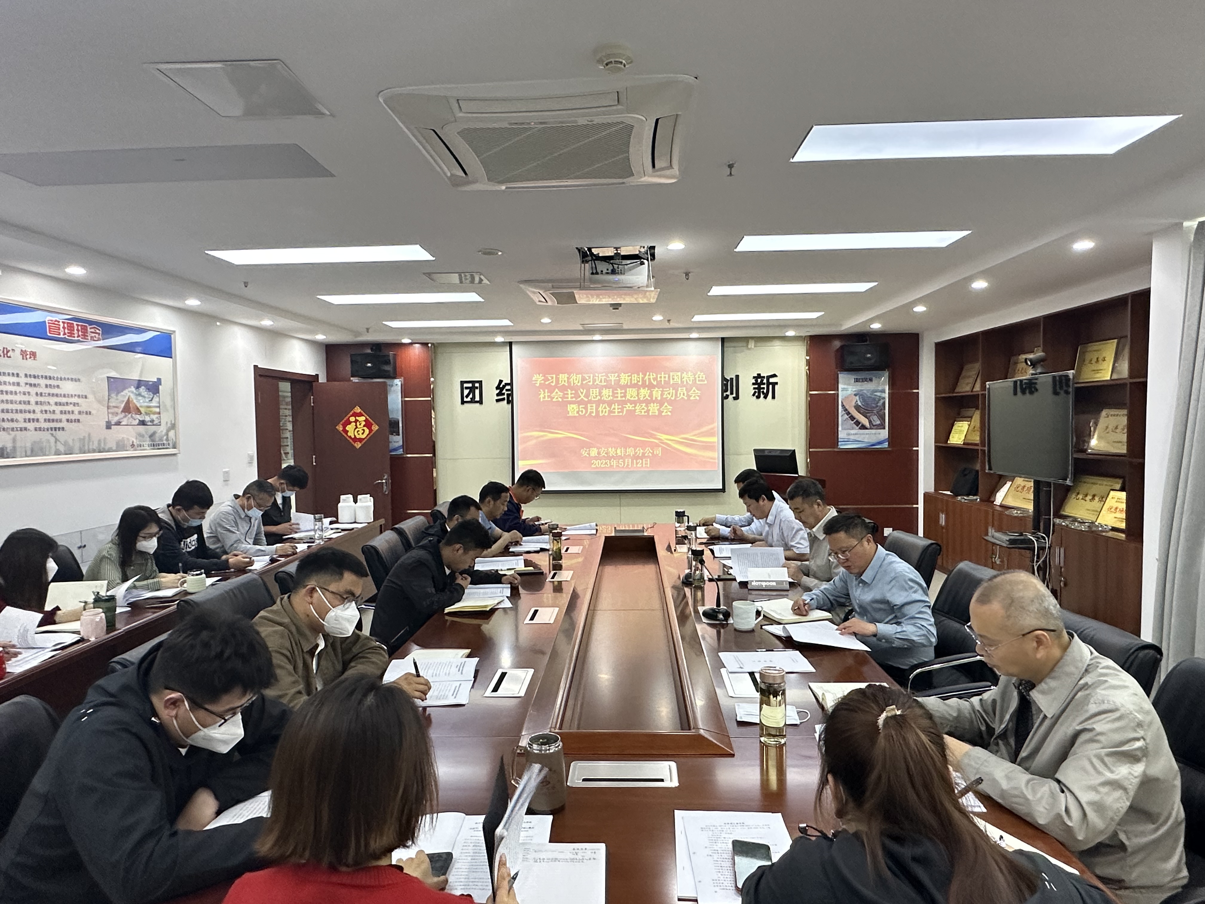 5月12日上午,蚌埠分公司召開學習貫徹習近平新時代中國特色社會主義思想主題教育動員會暨5月份生產經營會,公司紀委書記、工會主席李楊應邀出席會議,分公司領導班子成員、各項目主要負責人、機關各部門負責人及工程管理部全體員工參加會議,會議由分公司黨支部書記、副經理王偉主持。