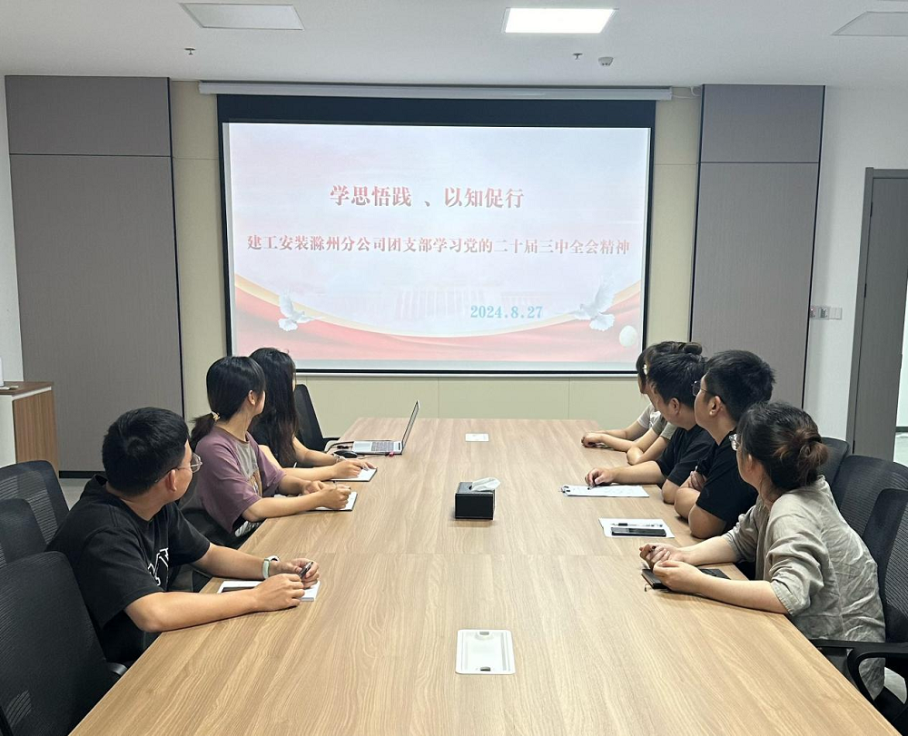 建工安裝滁州分公司認真學習了全會的相關內容。學習結束后,全體同志表示將把學習貫徹黨的二十屆三中全會精神作為當前和今后的重大政治任務,通過多種方式學深學透;與集團和公司決策部署結合,落實工作舉措;解放思想,強化責任擔當,將學習成果轉化為推動分公司高質量發展的動力。