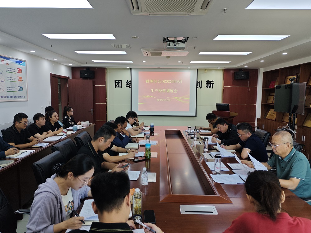 9月23日上午,蚌埠分公司組織召開9月份生產(chǎn)經(jīng)營(yíng)調(diào)度會(huì),分公司領(lǐng)導(dǎo)班子成員、所屬各項(xiàng)目部、機(jī)關(guān)各部門負(fù)責(zé)人及工程管理部全體員工參加會(huì)議,會(huì)議由分公司副經(jīng)理張斌主持。