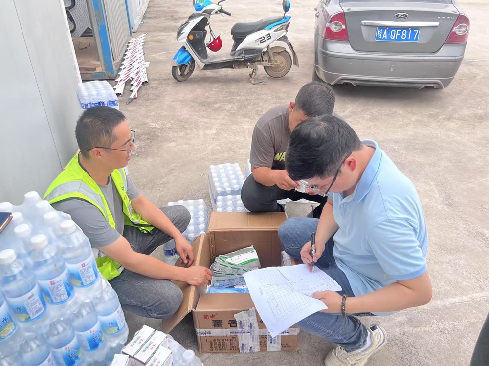 在作業點附近設置多個“清涼驛站”,現場發放防暑降溫藥品
