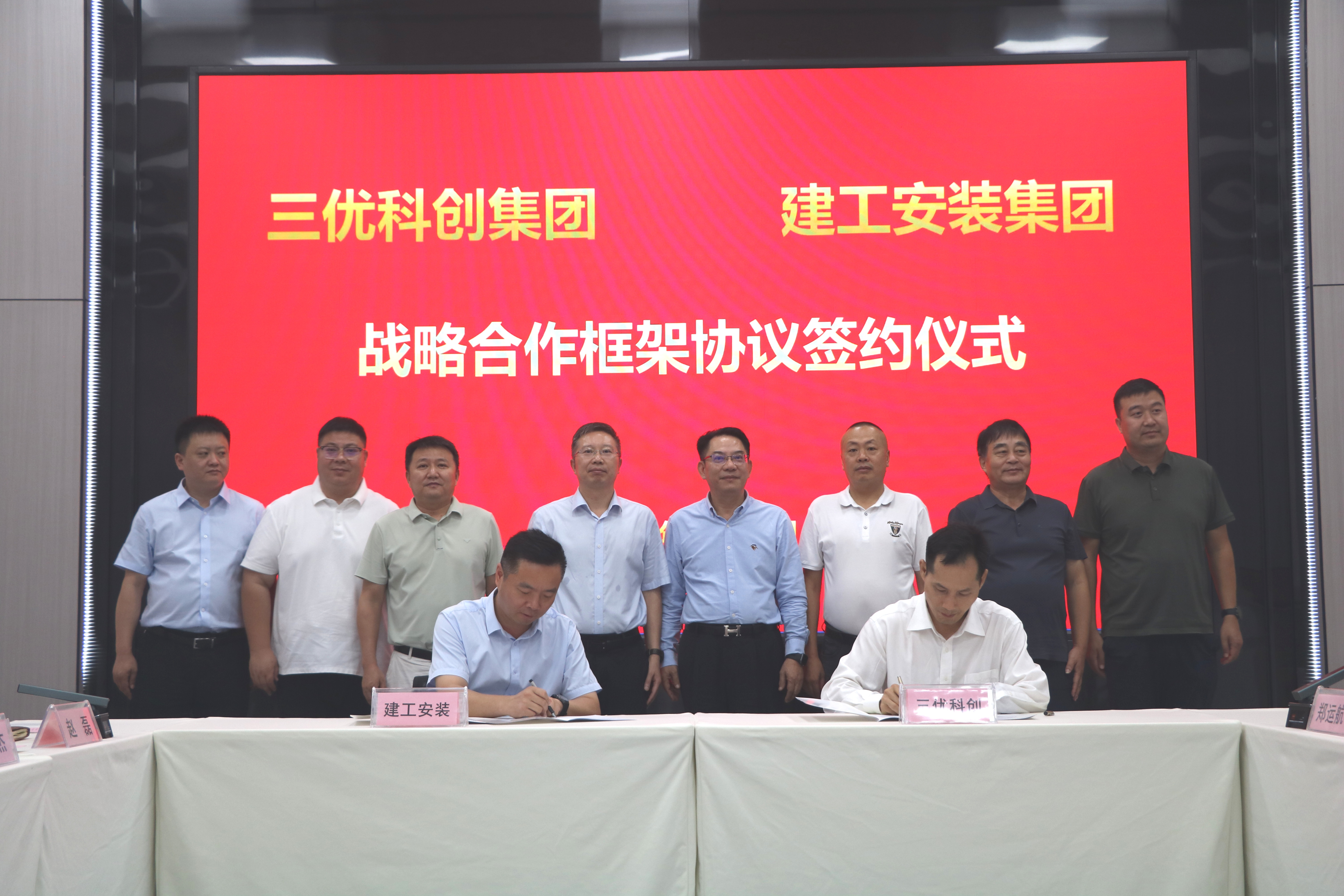 8月18日上午,建工安裝與江蘇三優科創集團舉行戰略合作簽約儀式。建工安裝黨委書記、董事長朱珍宏,三優控股董事長關邦勛出席共同見證簽約,并就深化雙方合作進行座談交流。